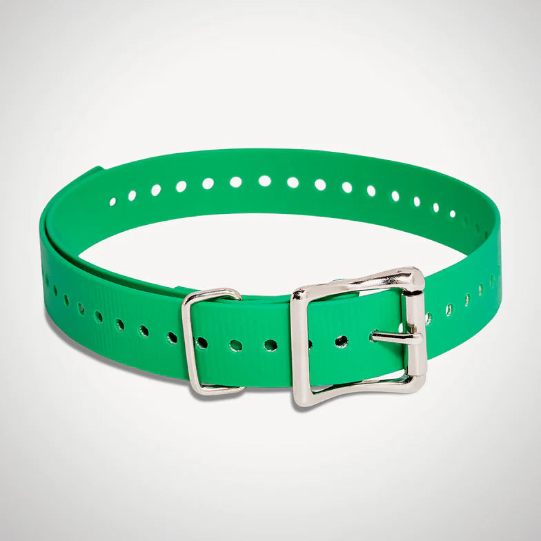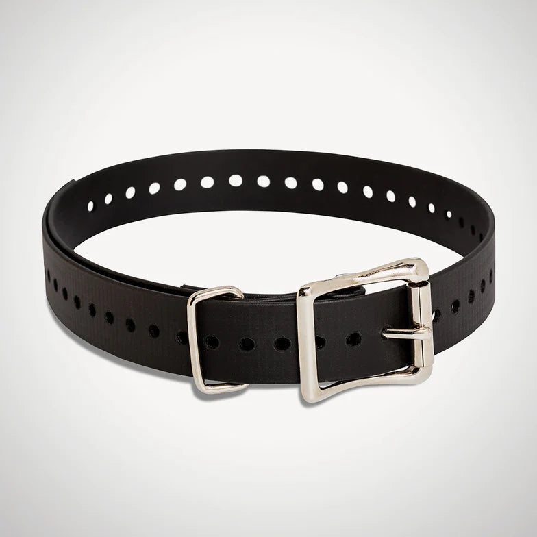 Replacement 1 inch collar straps for some models of SportDOG Brand® training e-collars such as the Contain + Train™ collar or TEK Series collars. Perfect for replacing old collar straps or differentiating each dog's collar. Simply remove the receiver unit from your dog's current collar and place it on the new strap. These straps do not feature a D-ring for leash attachment as leashes should not be attached to e-collars due to the uncomfortable pressure it causes from the probes on your dog’s neck. They do feature a metal strap keeper to help keep any excess strap flat against the collar.