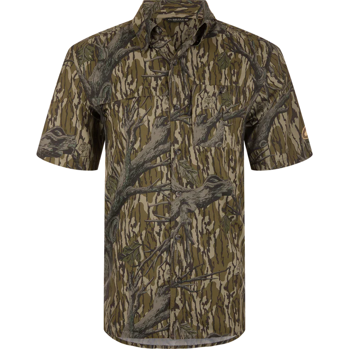 The Drake 8 Shot Shirt is made from 100% Polyester Dobby fabric featuring our exclusive Old School Camo pattern. The performance fabric is featherweight at 71 GSM which allows moisture to wick quickly from the body. It also has a UPF30 rating for sun protection and has a natural stretch for ease of movement. The Drake 8 Shot has a classic fit, a hidden button-down collar, and a vented cape back. The 8 Shot features a right chest pocket with a horizontal hidden zipper and a button through the left chest pocket with a hidden vertical zipper. It has a split tail hem which allows you to wear tucked or untucked. Classic styling and technical features will make The Drake 8 Shot one of your soon-to-be favorites.